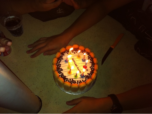 So today we celebrated wei jian bday. We had it celebrated earlier. Went to rw stall. Got a prank pandan cake for him. Not much reaction except he was happy to see Seng hwee here too. Gave him a bday card with lots of awesome moment in it. After eating dinner, the real ice cream cake was served. Same with no reaction on his face. Aiya I think is like so expected also. So eat the cake Liao. Chatted about a lot of stuff, mainly their stories of relationships. Thn went home.